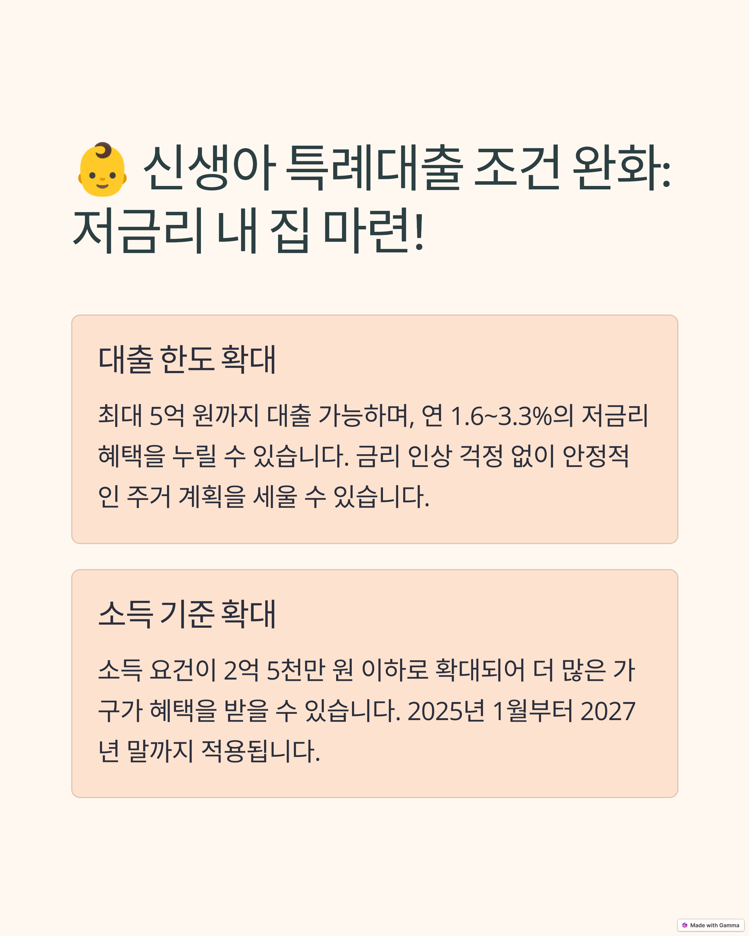 - 2025년부터는 소득 요건이 2억 5천만 원 이하로 확대되어 더 많은 가구가 혜택을 받을 수 있게 되었습니다.